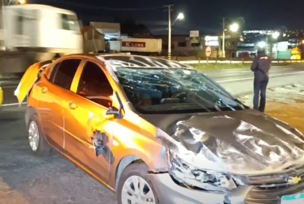 Segundo testemunhas um objeto não identificado caiu de um terceiro veículo, o que levou a caminhonete D10 rodar na pista e colidir contra uma Hillux que seguia o mesmo sentido.