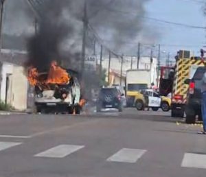 Uma VW Kombi foi destruída por um incêndio na tarde desta terça-feira (16), em Castro. O caso aconteceu por volta