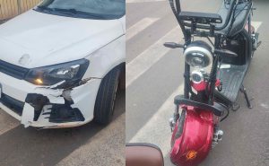 Um acidente envolvendo uma moto elétrica tipo scooter e um automóvel VW Gol foi registrado no final da tarde desta