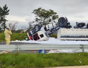 O acidente ocorrido na madrugada desta quinta-feira (2), envolvendo caminhão carregado com combustível, segue sendo acompanhado pelas autoridades na