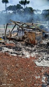 Um incêndio de grandes proporções destruiu completamente uma residência de madeira na região da Campina Alta, área rural de Castro,
