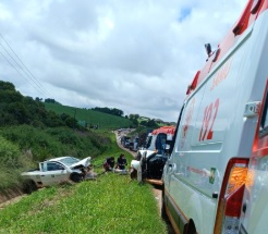 Uma colisão frontal envolvendo um Fiat Palio e uma VW Saveiro foi registrada no final da manhã desta quinta-feira (6),
