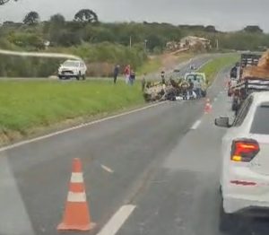 Um carro capotou no início da tarde desta sexta-feira (10) na PR-151, em Castro, nas proximidades da localidade do Tronco.
