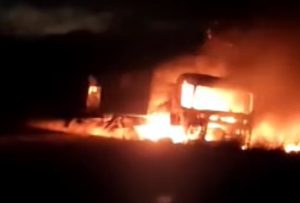 No local, os bombeiros encontraram o cavalo mecânico totalmente consumido pelas chamas. A primeira carreta do bitrem também sofreu danos, com a lona, parte da caçamba e pneus queimados. Já a segunda carreta da composição não foi atingida pelo fogo.