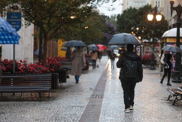 Em Ponta Grossa a máxima é de 27ºC e a mínima de 16ºC. Há 79% de probabilidade de ocorrência de chuva.