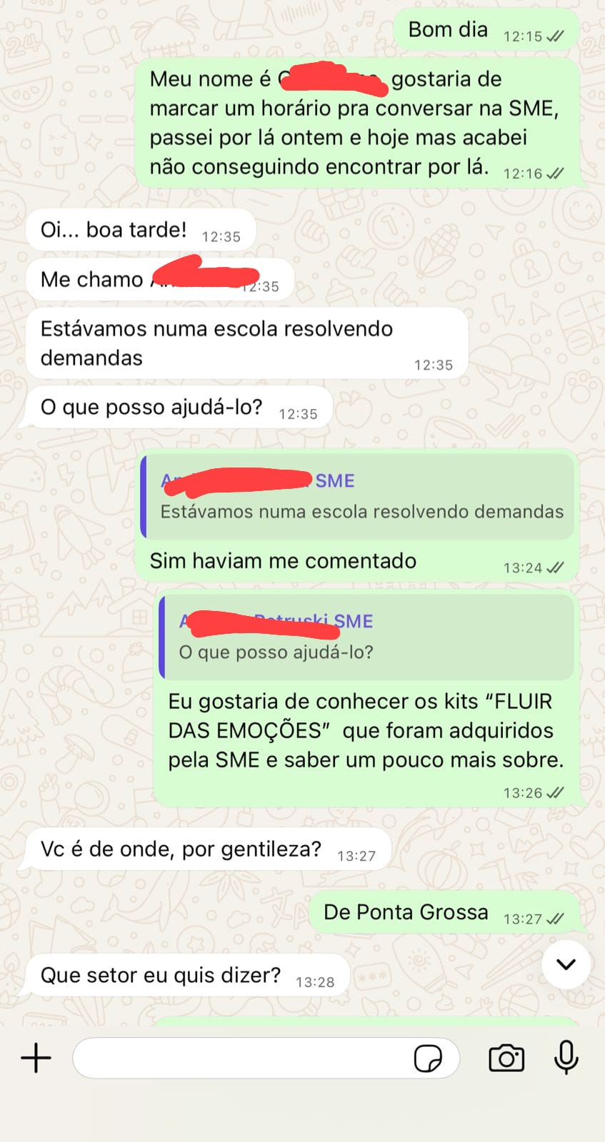 A Secretaria Municipal de Educação não atendeu aos questionamentos da Equipe do Portal MZ Notícias e para a população não quis apresentar os kits, não falou sobre o valor e menos ainda o meio de contratação da empresa. Em uma denúncia enviada com exclusividade para a reportagem, a responsável pelo material na SME não quis responder e disse que não era “prudente” dar as respostas, veja nas imagens:
