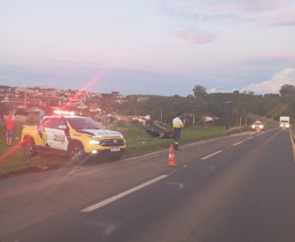 PRE detalha acidente que deixou dois jovens feridos e carro capotado em Jaguariaíva