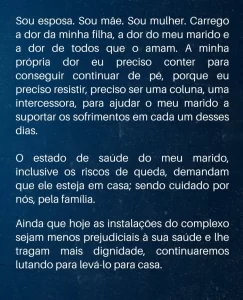Bolsonaro foi transferido para a Papudinha nessa quinta-feira (15/1) é sobre isso a ex-primeira-dama manteve na publicação que, apesar de as instalações da Papudinha serem melhores, a luta para uma prisão domiciliar humanitária continuará.