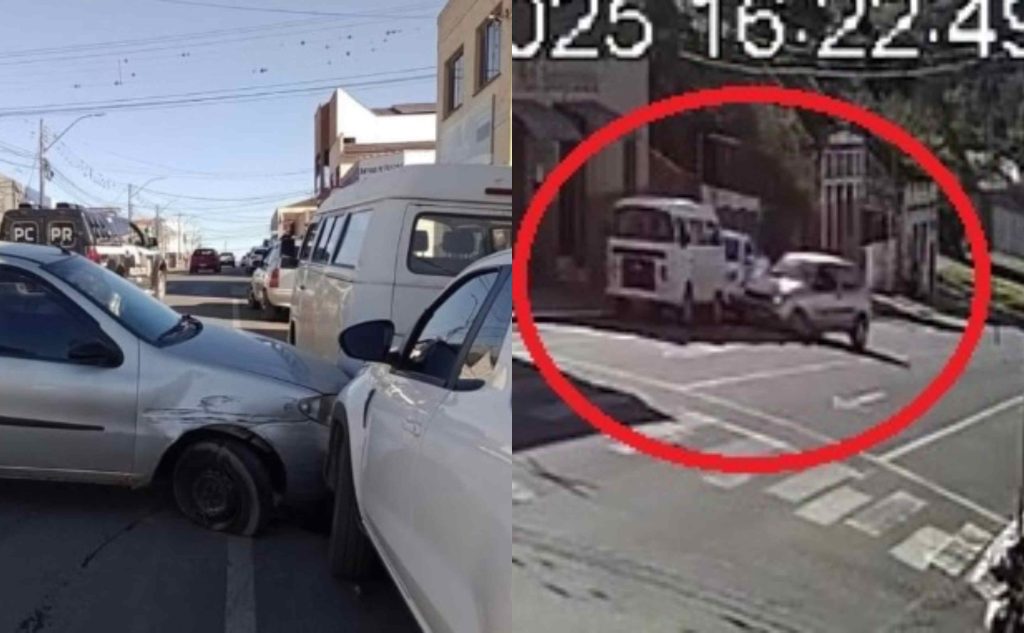 Câmeras de segurança registraram, às 16h22 desta quarta-feira (19), uma batida na Avenida Bernardo Barbosa Milléo, em Piraí do Sul.