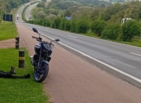Motociclista gera preocupação ao ser encontrado deitado em gramado na PR-151