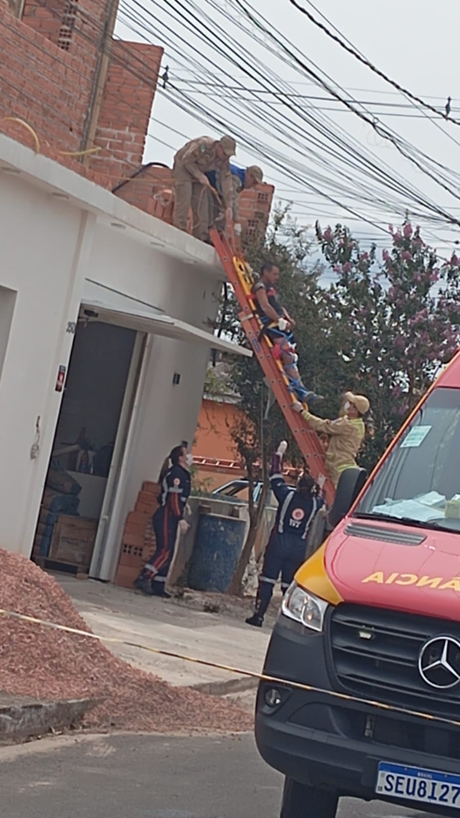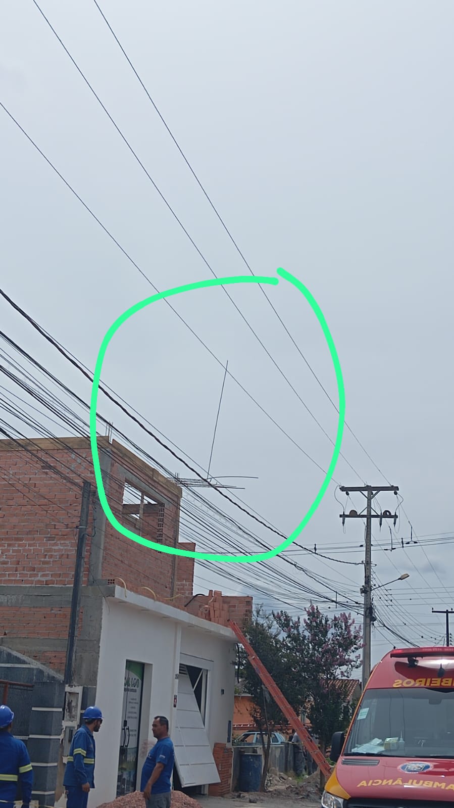 Três trabalhadores sofreram uma descarga elétrica ao tocarem com ferros perto dos fios elétricos de alta tensão. O ocorrido foi no bairro Jardim Arapongas, próximo ao hospital Instituto Moriah, em Castro.